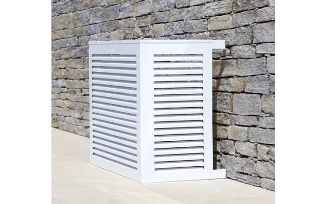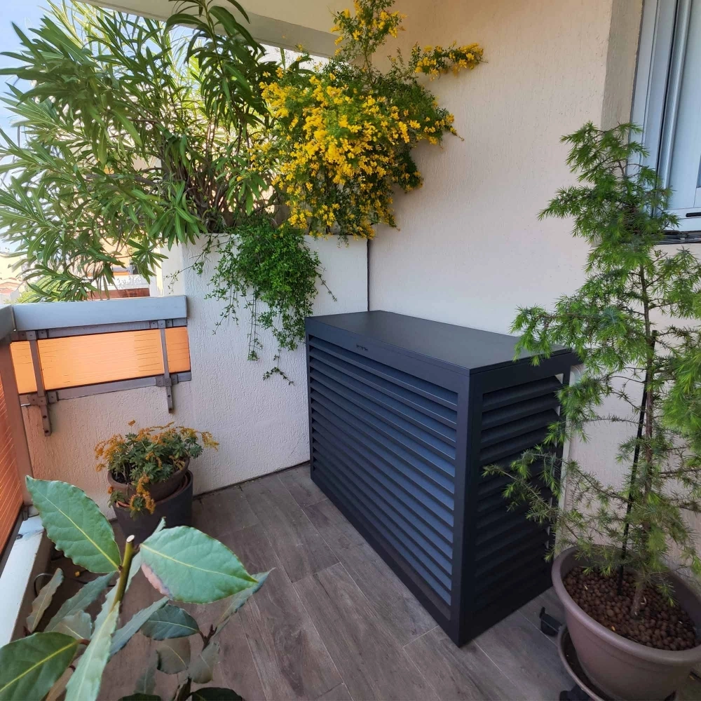 Résiste à toutes les pluies et intempéries : notre cache clim alu est anti-rouille et sa conception permet l’évacuation des eaux pour éviter qu’elles ne s’accumulent
